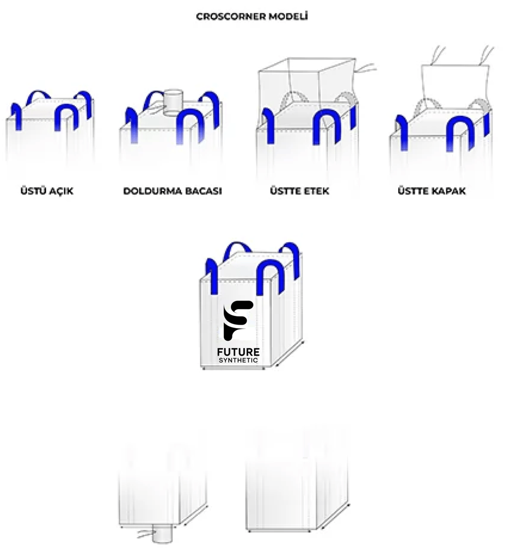 Cross corner FIBC hose fabrics produced from circular woven fabrics do not have side seams and the lifting handles are sewn on the body of the main fabric and sometimes looped with vertical fabric reinforcement. Big bags are generally preferred in order to save time and effort in transportation by forklift
