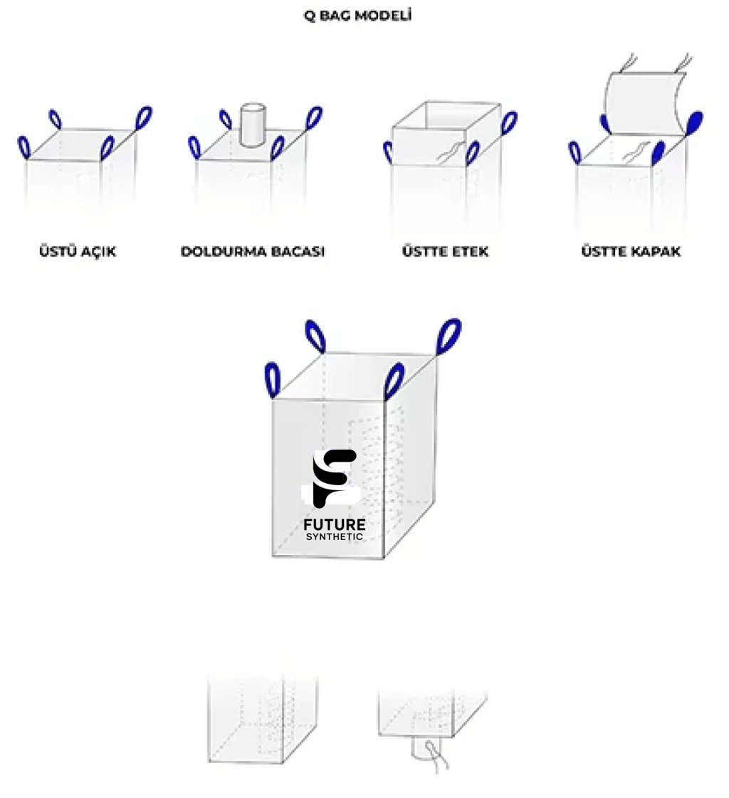 Q-Bag FIBCs are specially designed with inner panels. These inner panels are stitched to fasten the side edges of the FIBC together, allowing the FIBC to stand in the shape of a cube. Even after the FIBC is filled, the shape of the cube does not change. In addition, these inner panels prevent the FIBC from swelling from the sides when filled. There are symmetrical cavities (holes) in the middle of the inner panels. These cavities ensure that the filled material is spread evenly throughout the BigBag. Thus, the material that fills everywhere, including the FIBC corners, is scattered.
